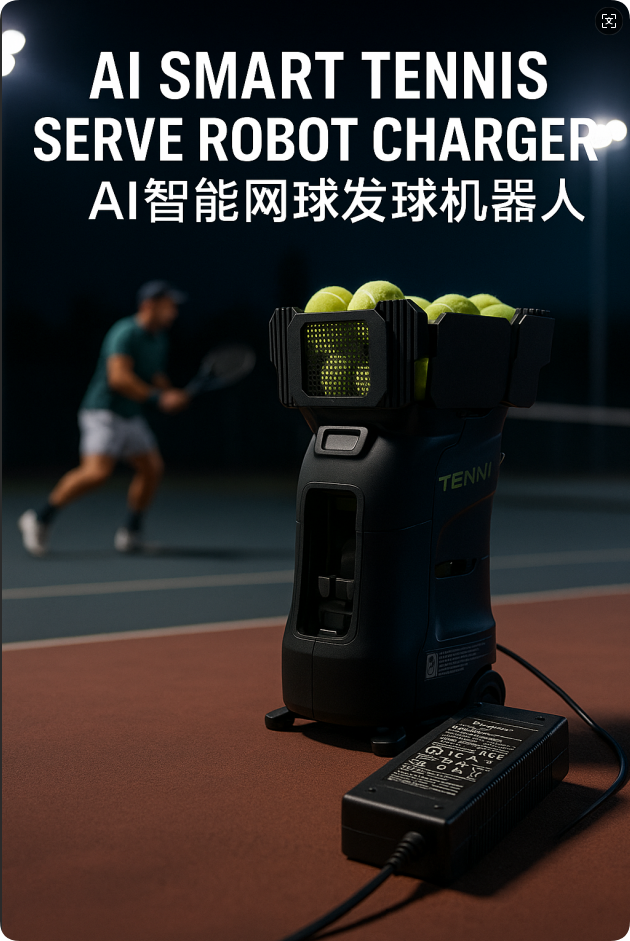 AI智能網球發(fā)球機;自動發(fā)球器;網球機器人;智能發(fā)球機器人;網球AI智能發(fā)球機器人充電器,電源適配器
